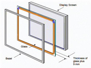 Gerade der hervorragende optische Eindruck wird durch die hohe Lichtdurchlässigkeit der Cover Lense verstärkt. Im Gegensatz zur Kunststoffschutzfolie beim analog resistiven Front Cover ist diese wesentlich höher. Ein besonderer Vorteil entsteht wenn Touch Screen Cover Lense und das dahinterliegende LCD miteinander "vergossen " werden. Das sogenannte "bounding". Dies gibt es in mehreren Aufführungen. Vollflächig oder nur am Rand umlaufend. Gerade hinsichtlich dem Eintritt von Schmutzpartikeln zwischen Touch und LCD bietet diese Art des Verklebens einen extremen Vorteil. Aber auch bei extrem schwankenden Temperaturen kann das Bounding die Kondensatbildung verhindern.